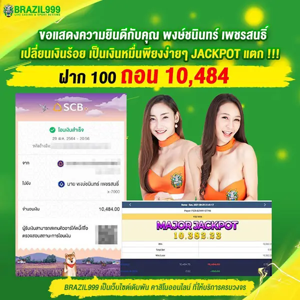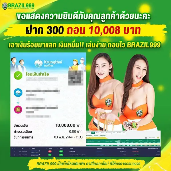 เว็บ BRAZIL999 เว็บตรง ไม่ผ่านเอเย่นต์ การันตีความมั่นคงทางการเงิน จ่ายจริงทุกยอด ไม่ว่าจะเป็นการเดิมพันกีฬายอดนิยมอย่างฟุตบอล หรือเกมคาสิโนสดที่มีดีลเลอร์สาวสวยคอยให้บริการตลอด 24 ชั่วโมง รวมถึง สล็อตแตกง่ายจากทุกค่ายดัง ที่พร้อมให้คุณลุ้นรางวัลใหญ่ได้ทุกวัน